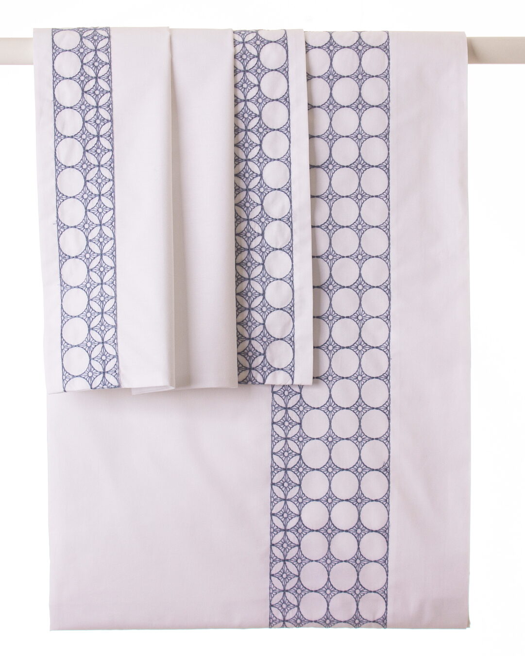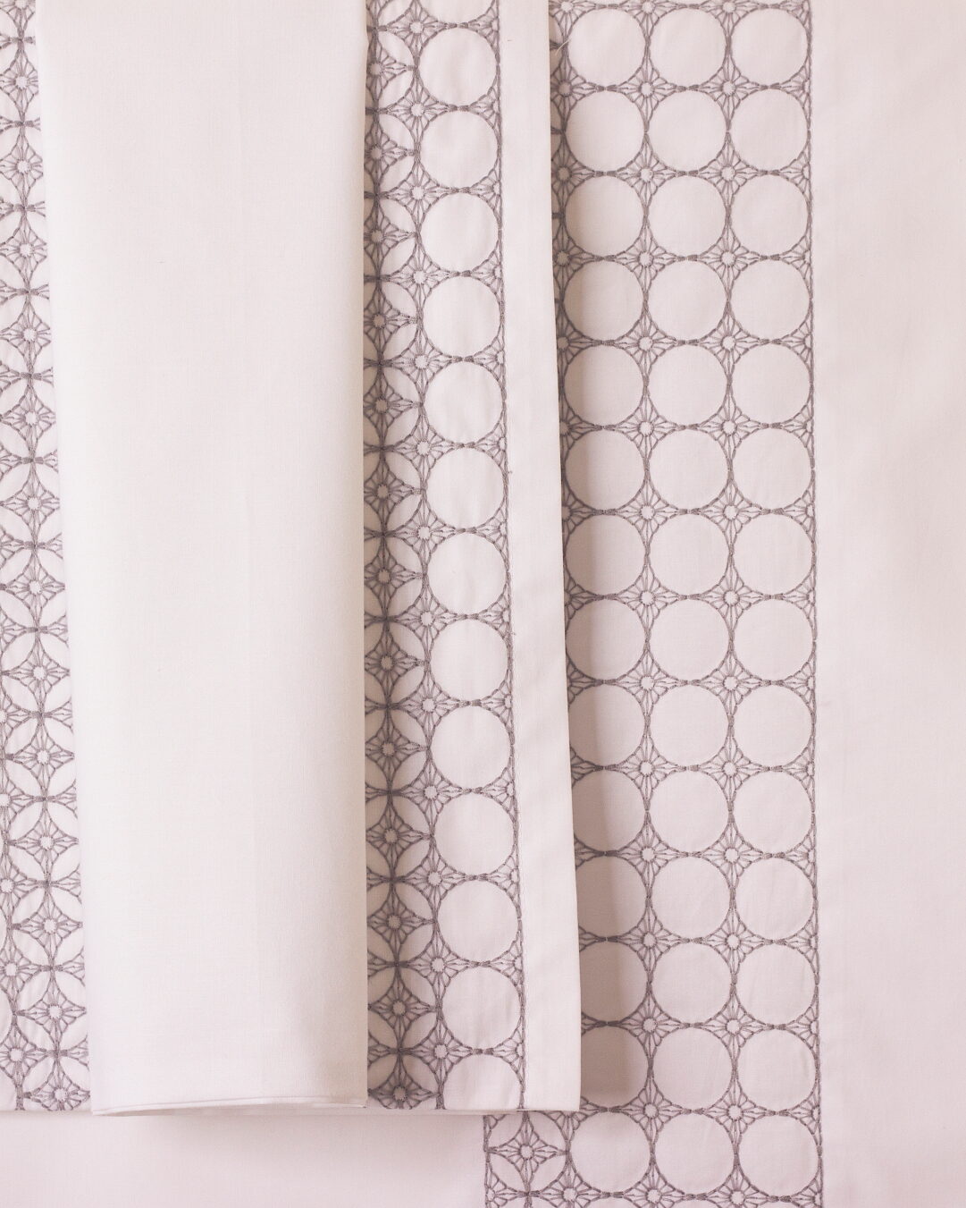 Conjunto composto por lençol de cima e fronhas (50×70 cm) em algodão percal de 200 fios