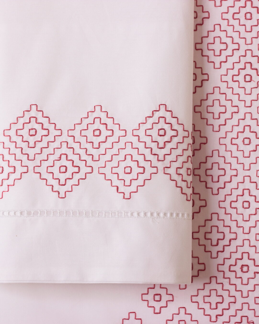 Conjunto composto por lençol de cima e fronhas (50×70 cm) em algodão percal de 200 fios